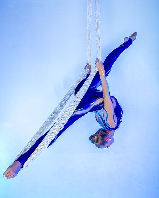 AERIAL NET act est une fusion magique d’éléments eau et air, comme une sirène empêtrée dans un filet marin. Souplesse et force, les chute inattendu et grâce font de ce numéro "sweet dream".